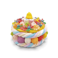 Gâteau rond composé de guimauves et de diverses confiseries.