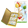 Chaque petit carré est habillé d’un emballage pastel illustré d’adorables lapins malicieux : un vrai petit trésor à offrir… ou à garder pour soi.