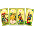 Chaque tablette est enveloppée d’un joli papier rétro : quatre illustrations délicieusement vintage qui semblent sortir d’un livre d’histoires oublié, où lapins, poussins et scènes de Pâques prenaient vie.