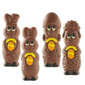 Les moulages qui font fondre Pâques ! Plongez dans la magie de Pâques avec cet adorable assortiment de moulages en chocolat au lait belge, finement décorés et terriblement craquants. Lapin, agneau, poussin… chaque figurine apporte sa petite touche de douceur et de bonne humeur, comme une parade printanière toute en chocolat.